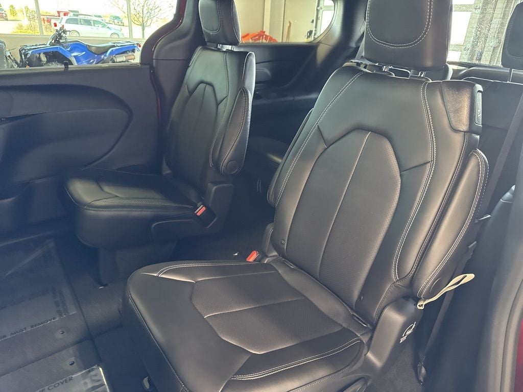 Quick Order Package 27L, Safety Sphere (360 Surround View Camera System and ParkSense Front/Rear Park Assist with Stop), 10.1 Touchscreen Display, 18 x 7.5 Painted Aluminum Wheels, 3.73 Axle Ratio, 3rd row seats: split-bench, 4-Wheel Disc Brakes, 4G LTE Wi-Fi Hot Spot, 6 Speakers, ABS brakes, Air Conditioning, Alloy wheels, AM/FM radio: SiriusXM, Apple CarPlay, Apple CarPlay/Android Auto, Auto-dimming Rear-View mirror, Automatic temperature control, AWD Suspension, Black Seats, Brake assist, Bumpers: body-color, Caprice Leatherette Bucket Seats, Compass, Connectivity - US/Canada, Delay-off headlights, Disassociated Touchscreen Display, Driver door bin, Driver vanity mirror, Driver's Seat Mounted Armrest, Dual front impact airbags, Dual front side impact airbags, Electronic Stability Control, Emergency communication system: Chrysler Connect, For Details, Visit DriveUconnect.com, Four wheel independent suspension, Front anti-roll bar, Front Bucket Seats, Front dual zone A/C, Front fog lights, Front reading lights, Fully automatic headlights, Garage door transmitter, Google Android Auto, GPS Antenna Input, Heated door mirrors, Heated front seats, Heated steering wheel, Illuminated entry, Integrated Active Noise Cancellation, Integrated Center Stack Radio, Knee airbag, Low tire pressure warning, Memory seat, Occupant sensing airbag, Outside temperature display, Overhead airbag, Overhead console, Panic alarm, ParkView Rear Back-Up Camera, Passenger door bin, Passenger seat mounted armrest, Passenger vanity mirror, Power door mirrors, Power driver seat, Power Liftgate, Power steering, Power windows, Radio data system, Radio: Uconnect 5 with 10.1 Display, Rain sensing wipers, Rear air conditioning, Rear reading lights, Rear window defroster, Rear window wiper, Reclining 3rd row seat, Remote keyless entry, Security system, Speed control, Split folding rear seat, Spoiler, Steering wheel mounted audio controls, Tachometer, Telescoping steering wheel, Tilt steering wheel, Traction control, Trip computer, Turn signal indicator mirrors, USB Host Flip, Variably intermittent wipers, Voltmeter, and Wheels: 18 x 7.5 Polished Aluminum Design 1.