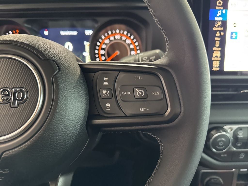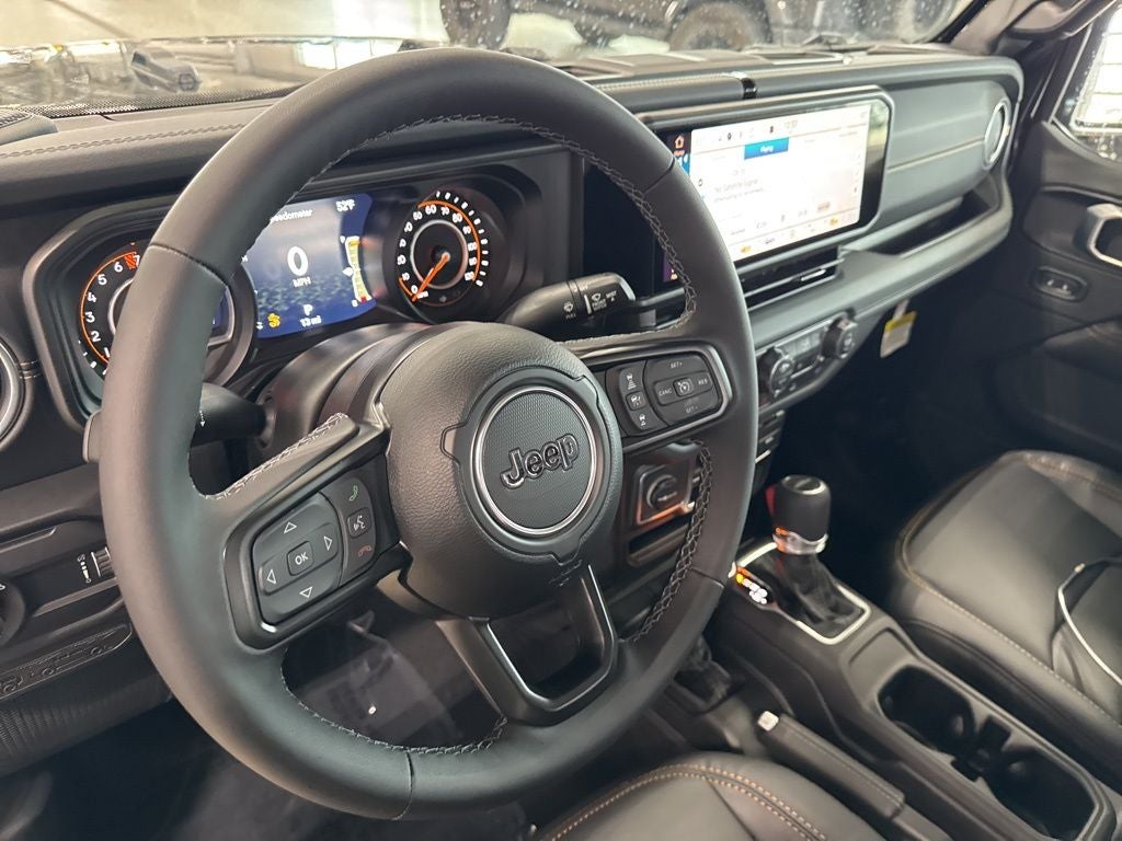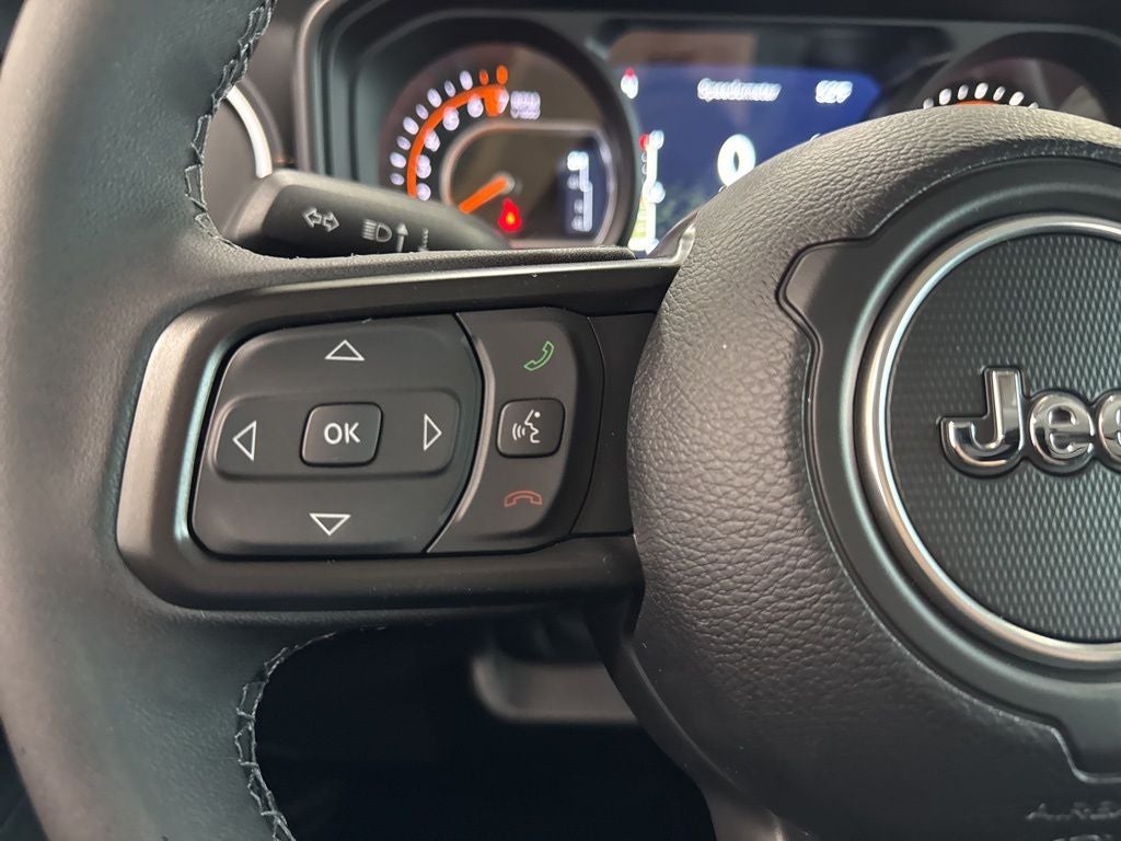 LED Headlamp and Fog Lamp Group (Daytime Running Lamps LED Accents, Front LED Fog Lamps, and LED Premium Reflector Headlamps), Quick Order Package 24H Sahara (110 Mph Vehicle Max Speed Calibration, 2-Piece Body Color Fender Flares, Advanced Brake Assist, Air Conditioning with Auto Temp Control, Automatic Headlamps, Body Color 3-Piece Hard Top, Central ADAS Decision Module (CADM), Cluster 7.0 TFT Color Display, Corning Gorilla Glass, Daytime Running Lamp System, Deep Tint Sunscreen Windows, Emergency/Assistance Call, Freedom Panel Storage Bag, Front Door Locks 2-Door Passive Entry, Full Length Floor Console Premium Armrest, Full Speed Forward Collision Warning Plus, Hard Seat Back, Heated Front Seats, Heated Steering Wheel, Leather Wrapped Park Brake Handle, Leather Wrapped Shift Knob, Normal Duty Plus Suspension, Power 4-Way Driver Lumbar Adjust, Power 4-Way Passenger Lumbar Adjust, Power Adjust 8-Way Driver Seat, Power Adjust 8-Way Front Passenger Seat, Power Heated Mirrors, Premium Door Trim Panel, Premium McKinley Trimmed Seats, Premium Wrapped Steering Wheel, Rear Armrest with Cupholder Seat, Rear Sliding Window, Rear Window Defroster, Remote Start System, Sahara, Sahara Badge Neutral Gray, Security Alarm, Sun Visors with Illuminated Vanity Mirrors, Universal Garage Door Opener, and Wheels: 18 x 7.5 Machined/Painted Gray), Technology Group (115V Auxiliary Power Outlet, 400W Inverter, Auto-Dimming Rear-View Mirror, Connected Travel and Traffic Services, GPS Navigation, HD Radio, Integrated Voice Command with Bluetooth®, Media Hub with 2 Charge Only USBs, and Radio: Uconnect 5 Navigation with 12.3 Display), Trailer Tow and Auxiliary Switch Group (Auxiliary Switches, Class IV Receiver Hitch, Heavy-Duty Engine Cooling, and Trailer Hitch Zoom), 12.3 Touchscreen Display, 3.73 Rear Axle Ratio, 4-Wheel Disc Brakes, 4G LTE Wi-Fi Hot Spot, 8 Speakers, ABS brakes, Air Conditioning, Alexa Built-in, Alpine Premium Audio System, AM/FM radio: SiriusXM with 360L, Apple CarPlay, Apple CarPlay/Android Auto, Brake assist, Compass, Connectivity - US/Canada, Delay-off headlights, Driver door bin, Driver vanity mirror, Dual front impact airbags, Dual front side impact airbags, Electronic Stability Control, For Details, Visit DriveUconnect.com, Front anti-roll bar, Front Bucket Seats, Front Center Armrest w/Storage, Front fog lights, Front License Plate Bracket, Front reading lights, Google Android Auto, Illuminated entry, Integrated Center Stack Radio, Integrated roll-over protection, Low tire pressure warning, Manufacturer's Statement of Origin, MOPAR All-Weather Slush Mats, Normal Duty Suspension, Occupant sensing airbag, Outside temperature display, Overhead airbag, Panic alarm, ParkView Rear Back-Up Camera, Passenger door bin, Passenger vanity mirror, Power steering, Power windows, Radio data system, Radio: Uconnect 5 with 12.3 Display, Rear anti-roll bar, Rear reading lights, Remote keyless entry, SiriusXM Radio Service, SiriusXM with 360L, Speed control, Split folding rear seat, Steering wheel mounted audio controls, Tachometer, Telescoping steering wheel, Tilt steering wheel, Traction control, Trip computer, USB Host Flip, Variably intermittent wipers, Voltmeter, and Wheels: 17 x 7.5 Black Steel StyleD.