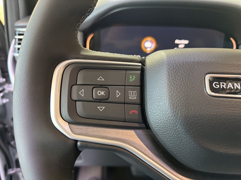 Black Appearance Package (118 Mph Maximum Speed Calibration, Black Exterior Accents, Titanium Daylight Opening Upper, Titanium Upper Grille Applique, and Wheels: 22 x 9 Painted Gloss Black), Limited Reserve Package, Quick Order Package 29D Reserve (19 Speaker McIntosh Audio System, 2nd Row Manual Window Shades, 3 Panel Sunroof, Cargo Cover, Cluster 12 TFT Color Display, Heads-Up Display, Instrument Panel, Interior Rear Facing Camera, Luxury Front and Rear Floor Mats, P and P Park and Unpark Assist with Stop System, Power Deployable Running Boards, Quadra-Lift Air Suspension, Reversible Carpet/Vinyl Cargo Mat, Semi Active Damping, Side Distance Warning, Smartphone as a Key Prep, and Surround View Camera System), 3.55 Rear Axle Ratio, 3rd row seats: bench, 4-Wheel Disc Brakes, 9 Speakers, ABS brakes, Air Conditioning, Alloy wheels, AM/FM radio: SiriusXM with 360L, Anti-whiplash front head restraints, Apple CarPlay/Android Auto, Audio memory, Auto Adjust in Reverse Exterior Mirrors, Auto High-beam Headlights, Auto-dimming door mirrors, Auto-Dimming Exterior Driver Mirror, Auto-dimming Rear-View mirror, Auto-leveling suspension, Automatic temperature control, Brake assist, Bumpers: body-color, Compass, Delay-off headlights, Driver door bin, Driver vanity mirror, Driver's Seat Mounted Armrest, Dual front impact airbags, Dual front side impact airbags, Electronic Stability Control, Emergency communication system: Jeep Connect, Exterior Mirrors Approach Lamps, Exterior Mirrors with Memory, Exterior Mirrors with Supplemental Signals, Exterior Parking Camera Rear, Four wheel independent suspension, Front anti-roll bar, Front Bucket Seats, Front Center Armrest w/Storage, Front dual zone A/C, Front fog lights, Front reading lights, Fully automatic headlights, Garage door transmitter, Heated door mirrors, Heated Exterior Mirrors, Heated front seats, Heated rear seats, Heated steering wheel, Illuminated entry, Knee airbag, Leather Trimmed Bucket Seats, Low tire pressure warning, Manufacturer Statement of Origin, Memory seat, Navigation System, Normal Duty Suspension, Occupant sensing airbag, Outside temperature display, Overhead airbag, Overhead console, Panic alarm, Passenger door bin, Passenger seat mounted armrest, Passenger vanity mirror, Power door mirrors, Power driver seat, Power Liftgate, Power passenger seat, Power steering, Power windows, Radio data system, Radio: Uconnect 5 Nav with 12.0 Display, Rain sensing wipers, Rear air conditioning, Rear anti-roll bar, Rear reading lights, Rear seat center armrest, Rear window defroster, Rear window wiper, Reclining 3rd row seat, Remote keyless entry, Security system, Speed control, Speed-sensing steering, Speed-Sensitive Wipers, Split folding rear seat, Steering wheel memory, Steering wheel mounted audio controls, Tachometer, Telescoping steering wheel, Tilt steering wheel, Traction control, Trip computer, Turn signal indicator mirrors, Variably intermittent wipers, Ventilated front seats, Ventilated rear seats, and Voltmeter.