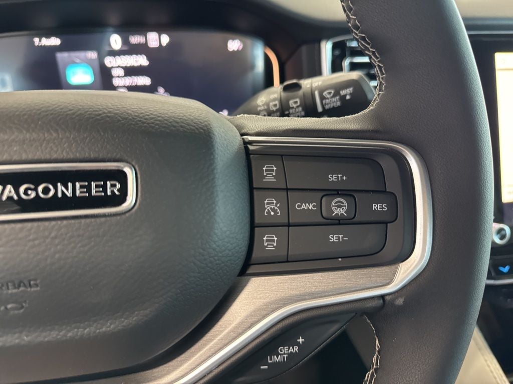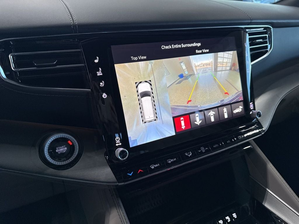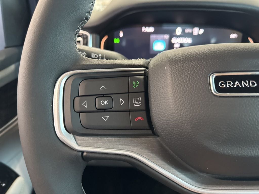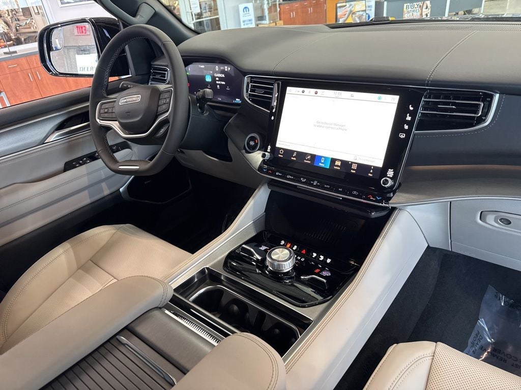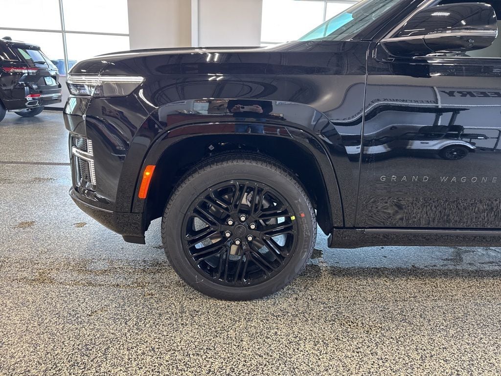 Black Appearance Package (118 Mph Maximum Speed Calibration, Black Exterior Accents, Titanium Daylight Opening Upper, Titanium Upper Grille Applique, and Wheels: 22 x 9 Painted Gloss Black), Limited Reserve Package, Quick Order Package 29D Reserve (19 Speaker McIntosh Audio System, 2nd Row Manual Window Shades, 3 Panel Sunroof, Augmented HUD, Cargo Cover, Cluster 12 TFT Color Display, Instrument Panel, Interior Rear Facing Camera, Luxury Front and Rear Floor Mats, P and P Park and Unpark Assist with Stop System, Power Deployable Running Boards, Quadra-Lift Air Suspension, Reversible Carpet/Vinyl Cargo Mat, Semi Active Damping, Side Distance Warning, Smartphone as a Key Prep, and Surround View Camera System), 3.55 Rear Axle Ratio, 3rd row seats: bench, 4-Wheel Disc Brakes, 9 Speakers, ABS brakes, Air Conditioning, Alloy wheels, AM/FM radio: SiriusXM with 360L, Anti-whiplash front head restraints, Apple CarPlay/Android Auto, Audio memory, Auto Adjust in Reverse Exterior Mirrors, Auto High-beam Headlights, Auto-dimming door mirrors, Auto-Dimming Exterior Driver Mirror, Auto-dimming Rear-View mirror, Auto-leveling suspension, Automatic temperature control, Brake assist, Bumpers: body-color, Compass, Delay-off headlights, Driver door bin, Driver vanity mirror, Driver's Seat Mounted Armrest, Dual front impact airbags, Dual front side impact airbags, Electronic Stability Control, Emergency communication system: Jeep Connect, Exterior Mirrors Approach Lamps, Exterior Mirrors with Memory, Exterior Mirrors with Supplemental Signals, Exterior Parking Camera Rear, Four wheel independent suspension, Front anti-roll bar, Front Bucket Seats, Front Center Armrest w/Storage, Front dual zone A/C, Front fog lights, Front reading lights, Fully automatic headlights, Garage door transmitter, Heated door mirrors, Heated Exterior Mirrors, Heated front seats, Heated rear seats, Heated steering wheel, Illuminated entry, Knee airbag, Leather Trimmed Bucket Seats, Low tire pressure warning, Manufacturer Statement of Origin, Memory seat, Navigation System, Normal Duty Suspension, Occupant sensing airbag, Outside temperature display, Overhead airbag, Overhead console, Panic alarm, Passenger door bin, Passenger seat mounted armrest, Passenger vanity mirror, Power door mirrors, Power driver seat, Power Liftgate, Power passenger seat, Power steering, Power windows, Radio data system, Radio: Uconnect 5 Nav with 12.0 Display, Rain sensing wipers, Rear air conditioning, Rear anti-roll bar, Rear reading lights, Rear seat center armrest, Rear window defroster, Rear window wiper, Reclining 3rd row seat, Remote keyless entry, Security system, Speed control, Speed-sensing steering, Speed-Sensitive Wipers, Split folding rear seat, Steering wheel memory, Steering wheel mounted audio controls, Tachometer, Telescoping steering wheel, Tilt steering wheel, Traction control, Trip computer, Turn signal indicator mirrors, Variably intermittent wipers, Ventilated front seats, Ventilated rear seats, Voltmeter, and Wheels: 20 x 9 Aluminum Painted.