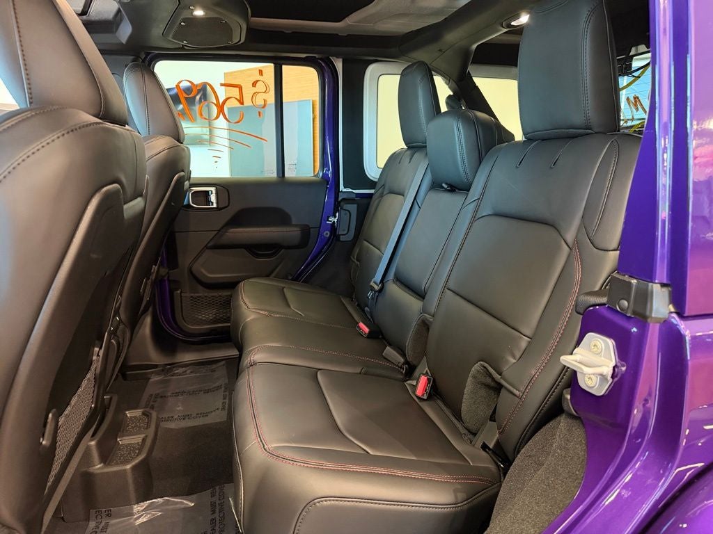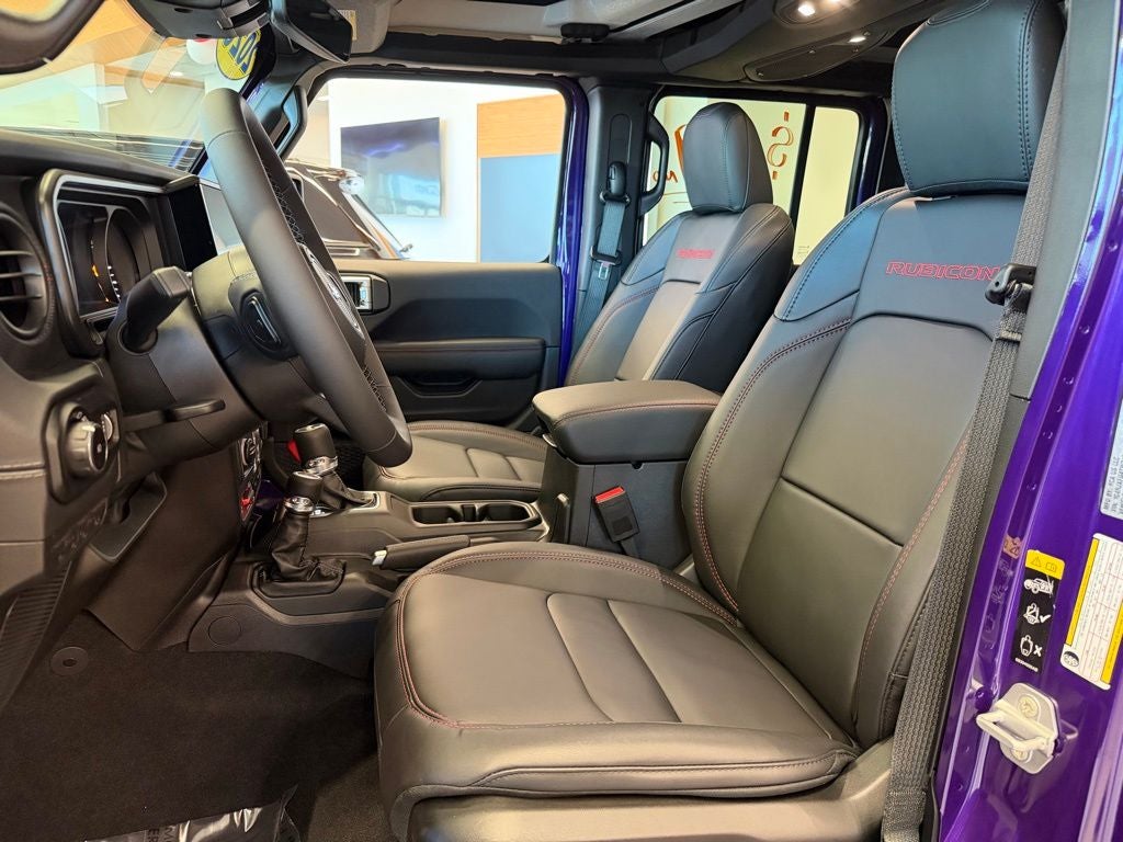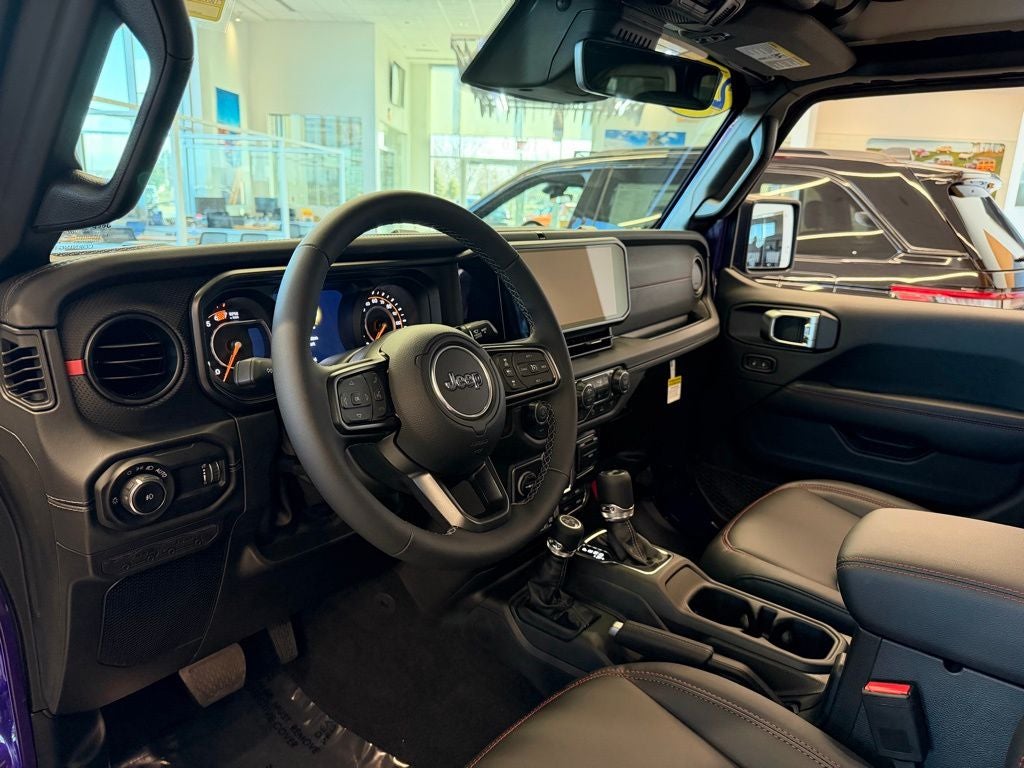 Quick Order Package 24Y Rubicon X (12.3 Touchscreen Display, 4G LTE Wi-Fi Hot Spot, Acoustic Front Seat Area Carpet, Acoustic Laminated Front Door Glass, Alpine Premium Audio System, Apple CarPlay, Auto High Beam Headlamp Control, Auto-Dimming Rear-View Mirror, Blind Spot and Cross Path Detection, Body Color 3-Piece Hard Top, Body Color Rubicon Highline Flare, Connected Travel and Traffic Services, Connectivity - US/Canada, Freedom Panel Storage Bag, Google Android Auto, HD Radio, Heated Front Seats, Heated Steering Wheel, Integrated Off-Road Camera, Integrated Voice Command with Bluetooth®, Leather Wrapped Park Brake Handle, Leather Wrapped Shift Knob, MOPAR Hardtop Headliner, Nappa Leather Seats, ParkSense Rear Park Assist System, Power 4-Way Driver Lumbar Adjust, Power 4-Way Passenger Lumbar Adjust, Power Adjust 8-Way Driver Seat, Power Adjust 8-Way Front Passenger Seat, Premium Door Trim Panel, Radio: Uconnect 5 Navigation with 12.3 Display, Rear Window Defroster, Rear Window Wiper/Washer, SiriusXM with 360L, Steel Front Bumper, Steel Rear Bumper, and Universal Garage Door Opener), Trailer Tow and Auxiliary Switch Group (Auxiliary Switches and Class II Receiver Hitch), Trailer Tow Prep Package, 35 Tire Suspension, 4-Wheel Disc Brakes, 8 Speakers, ABS brakes, Air Conditioning, Alloy wheels, AM/FM radio: SiriusXM with 360L, Apple CarPlay/Android Auto, Automatic temperature control, Aux Battery, Brake assist, Cloth Low-Back Bucket Seats, Compass, Delay-off headlights, Driver door bin, Driver vanity mirror, Dual front impact airbags, Dual front side impact airbags, Electronic Stability Control, Emergency communication system: Jeep Connect, For More Info, Call 800-643-2112, Front anti-roll bar, Front Bucket Seats, Front Center Armrest w/Storage, Front dual zone A/C, Front fog lights, Front License Plate Bracket, Front reading lights, Fully automatic headlights, Heated door mirrors, Illuminated entry, Integrated Center Stack Radio, Integrated roll-over protection, Jeep Trail Rated Kit, Low tire pressure warning, MOPAR All-Weather Floor Mats, MOPAR Hinge-Gate Reinforcement, Non-Lock Fuel Cap Without Discriminator, Occupant sensing airbag, Outside temperature display, Overhead airbag, Panic alarm, ParkView Rear Back-Up Camera, Passenger door bin, Passenger vanity mirror, Performance Suspension, Power door mirrors, Power steering, Power windows, Radio data system, Radio: Uconnect 5 with 12.3 Display, Rear anti-roll bar, Rear reading lights, Remote keyless entry, Security system, SiriusXM Radio Service, Speed control, Split folding rear seat, Steering wheel mounted audio controls, Stop-Start Dual Battery System, Tachometer, Telescoping steering wheel, Tilt steering wheel, Traction control, Trip computer, Variably intermittent wipers, Voltmeter, Wheels: 17 x 7.5 Machined/Painted Black, and Wheels: 17 x 8 Machined with Black Pockets.