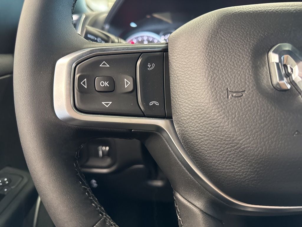Big Horn Level 1 Equipment Group (115V Auxiliary Power Outlet, 2nd Row in Floor Storage Bins, 3 Rear Seat Head Restraints, 4 Way Front Headrests, 400W Inverter, Auto Power-Folding Mirrors, Auto-Dimming Exterior Driver Mirror, Auto-Dimming Rear-View Mirror, Black Exterior Mirrors, Black Premium Power Mirrors, Body Color Fender Flares, Bucket Seats, Center Console Parts Module, Convex Wide-Angle Exterior Mirror Insert, Deluxe Cloth Bucket Seats, Exterior Mirrors Courtesy Lamps, Exterior Mirrors with Heating Element, Exterior Mirrors with Supplemental Signals, Front Seat Back Map Pockets, Full Length Floor Console, Glove Box Lamp, Heated Front Seats, Heated Steering Wheel, Leather Wrapped Steering Wheel, Manual Adjust 4-Way Front Passenger Seat, Power 2-Way Driver Lumbar Adjust, Power Adjust 8-Way Driver Seat, Power Adjustable Pedals, Rear 60/40 Folding Seat, Rear Center Armrest, Rear Dome with on/Off Switch Lamp, Rear Power Sliding Window, Rear Window Defroster, SiriusXM Radio Service, SiriusXM Satellite Radio, Steering Wheel Mounted Audio Controls, Sun Visors with Illuminated Vanity Mirrors, and Universal Garage Door Opener), Night Edition (Accent Color Door Handles, Accent Color Premium Power Mirrors, Accent Color Tailgate Handle, Anti-Spin Differential Rear Axle, Black Exterior Truck Badging, Black Headlamp Bezels, Black Interior Accents, Black Painted Exterior Mirrors Caps, Black Tail Lamp Bezels, Body Color Front Bumper, Body Color Rear Bumper with Step Pads, Dual Exhaust with Black Tips, Grille Black Surround Black Mesh, RAM Grille Badge - Black, and Wheels: 20 x 9.0 Aluminum Painted Clad), Quick Order Package 27Z Big Horn, 33 Gallon Fuel Tank, 4-Wheel Disc Brakes, 48V Belt Starter Generator, 4G LTE Wi-Fi Hot Spot, 6 Speakers, ABS brakes, Air Conditioning, Alloy wheels, AM/FM radio, Apple CarPlay, Apple CarPlay/Android Auto, Auto High-beam Headlights, Brake assist, Bumpers: chrome, Cloth Bucket Seats, Compass, Connectivity - US/Canada, Delay-off headlights, Driver door bin, Dual front impact airbags, Dual front side impact airbags, Electronic Stability Control, Front anti-roll bar, Front Bucket Seats, Front Center Armrest w/Storage, Front fog lights, Front License Plate Bracket, Front reading lights, Front wheel independent suspension, Fully automatic headlights, Global Telematics Box Module, Google Android Auto, GPS Antenna Input, Heated door mirrors, Illuminated entry, Integrated Center Stack Radio, Integrated Voice Command with Bluetooth®, Low tire pressure warning, Manual Adjust 4-Way Driver Seat, Manual Folding Exterior Mirrors, Manufacturer's Statement of Origin, MOPAR Front and Rear Rubber Floor Mats, Occupant sensing airbag, Outside temperature display, Overhead airbag, Overhead console, Panic alarm, ParkView Rear Back-Up Camera, Passenger door bin, Passenger vanity mirror, Power door mirrors, Power steering, Power windows, Radio data system, Radio: Uconnect 5 W with 8.4 Display, RAM Grille Badge - Chrome, Rear anti-roll bar, Rear step bumper, Remote keyless entry, Speed control, Supplier Part Tracking (J-1), Tachometer, Telescoping steering wheel, Tilt steering wheel, Traction control, Trailer Brake Control, Trip computer, USB Host Flip, Variably intermittent wipers, and Voltmeter.