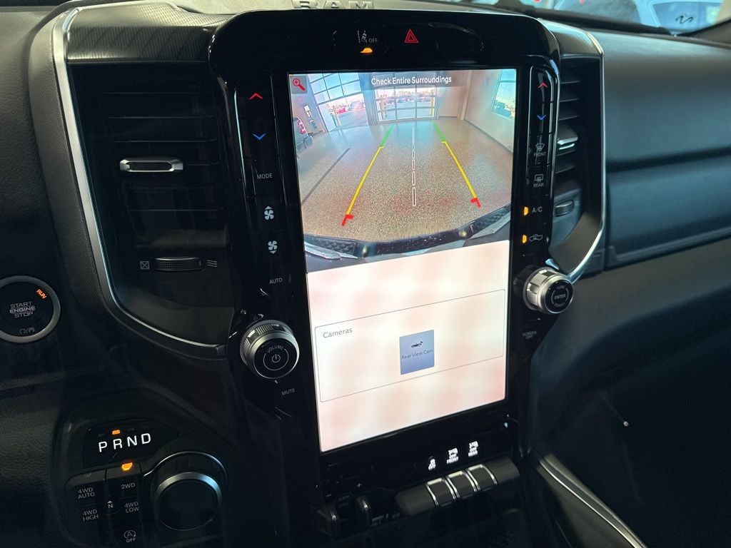 Big Horn Level 2 Equipment Group (115V Auxiliary Power Outlet, 115V Auxiliary Rear Power Outlet, 12 Touchscreen Display, 2nd Row in Floor Storage Bins, 3 Rear Seat Head Restraints, 4 Way Front Headrests, 400W Inverter, 4G LTE Wi-Fi Hot Spot, 9 Amplified Speakers with Subwoofer, Air Conditioning ATC with Dual Zone Control, Apple CarPlay, Auto Power-Folding Mirrors, Auto-Dimming Exterior Driver Mirror, Auto-Dimming Rear-View Mirror, Black Exterior Mirrors, Black Premium Power Mirrors, Body Color Fender Flares, Bucket Seats, Center Console Parts Module, Cluster 7.0 TFT Color Display, Configurable Drive Mode, Connected Travel and Traffic Services, Connectivity - US/Canada, Convex Wide-Angle Exterior Mirror Insert, Deluxe Cloth Bucket Seats, Disassociated Touchscreen Display, Exterior Mirrors Courtesy Lamps, Exterior Mirrors with Heating Element, Exterior Mirrors with Supplemental Signals, Front Seat Back Map Pockets, Full Length Floor Console, Global Telematics Box Module, Glove Box Lamp, Google Android Auto, GPS Antenna Input, GPS Navigation, HD Radio, Heated Front Seats, Heated Steering Wheel, Integrated Center Stack Radio, Integrated Voice Command with Bluetooth®, Leather Wrapped Steering Wheel, LED Dome Lamp with on/Off Switch, LED Footwell Lighting, Manual Adjust 4-Way Front Passenger Seat, Media Hub with 2 Charge Only USBs, Overhead LED Lamps, Power 2-Way Driver Lumbar Adjust, Power Adjust 8-Way Driver Seat, Power Adjustable Pedals, Premium Overhead Console, Radio: Uconnect 5 Navigation with 12.0 Display, Rear 60/40 Folding Seat, Rear Center Armrest, Rear Power Sliding Window, Rear Window Defroster, Remote Tailgate Release, Security Alarm, SiriusXM Radio Service, SiriusXM with 360L, Steering Wheel Mounted Audio Controls, Sun Visors with Illuminated Vanity Mirrors, Universal Garage Door Opener, USB Host Flip, and Wheels: 20 x 9 Aluminum Chrome Clad), Protection Group (Tow Hooks), Quick Order Package 27Z Big Horn, Sport Appearance Package (Black Interior Accents, Body Color Door Handles, Body Color Front Bumper, Body Color Rear Bumper with Step Pads, Body Color Tailgate Handle, Grille Surround 1 Body Color Texture 1 Black, and RAM Grille Badge - Chrome), 33 Gallon Fuel Tank, 4-Wheel Disc Brakes, 48V Belt Starter Generator, 6 Speakers, ABS brakes, Air Conditioning, Alloy wheels, AM/FM radio, Anti-Spin Differential Rear Axle, Apple CarPlay/Android Auto, Auto High-beam Headlights, Brake assist, Bumpers: chrome, Cloth Bucket Seats, Compass, Delay-off headlights, Driver door bin, Dual front impact airbags, Dual front side impact airbags, Electronic Stability Control, Front anti-roll bar, Front Bucket Seats, Front Center Armrest w/Storage, Front fog lights, Front License Plate Bracket, Front reading lights, Front wheel independent suspension, Fully automatic headlights, Heated door mirrors, Illuminated entry, Low tire pressure warning, Manual Adjust 4-Way Driver Seat, Manual Folding Exterior Mirrors, MOPAR Front and Rear Rubber Floor Mats, Occupant sensing airbag, Outside temperature display, Overhead airbag, Overhead console, Panic alarm, ParkView Rear Back-Up Camera, Passenger door bin, Passenger vanity mirror, Power door mirrors, Power steering, Power windows, Radio data system, Radio: Uconnect 5 W with 8.4 Display, Rear anti-roll bar, Rear step bumper, Rear Wheelhouse Liners, Remote keyless entry, Speed control, Supplier Part Tracking (J-1), Tachometer, Telescoping steering wheel, Tilt steering wheel, Traction control, Trailer Brake Control, Trip computer, Variably intermittent wipers, and Voltmeter.