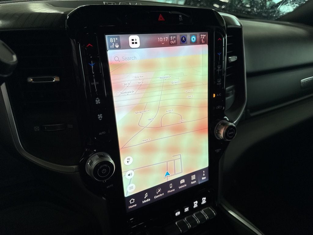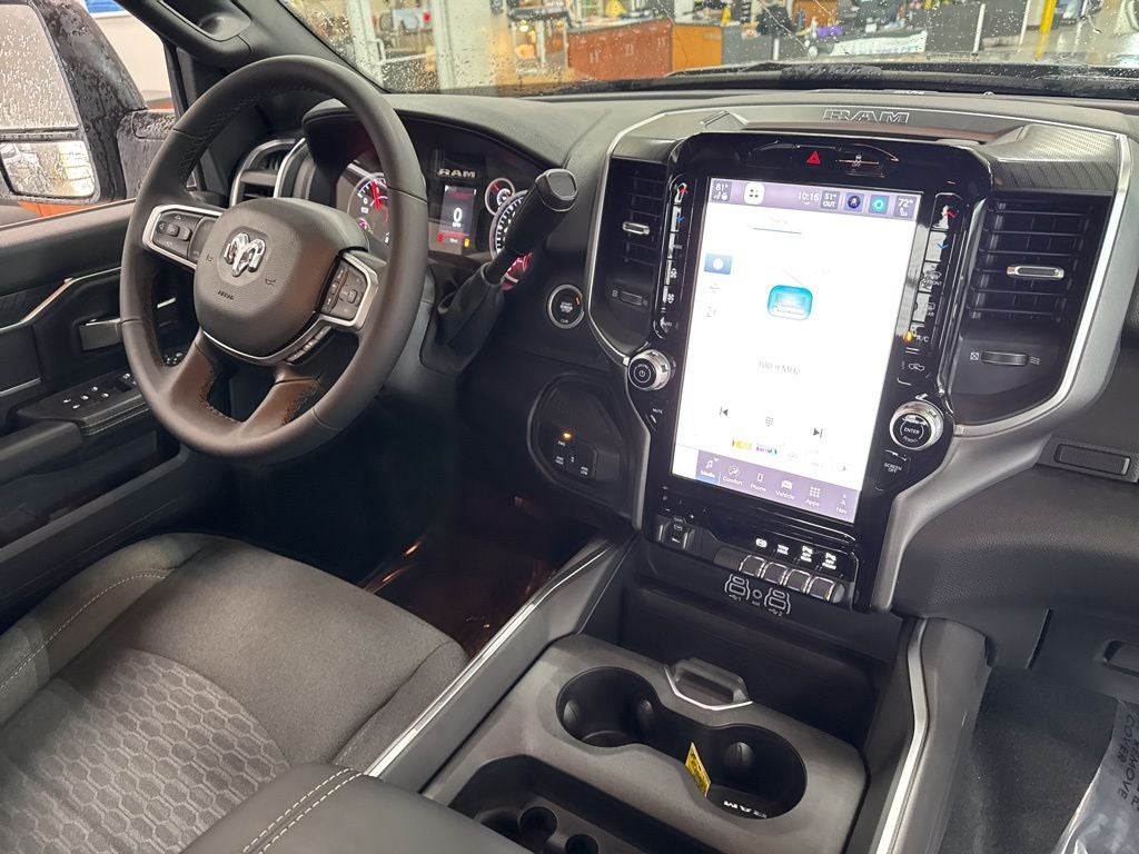 Big Horn Level 1 Plus Equipment Group (12 Touchscreen Display, 2 Way Rear Headrest Seat, 2nd Row in Floor Storage Bins, 4 Way Front Headrests, 40/20/40 Split Bench Seat, 4G LTE Wi-Fi Hot Spot, 9 Alpine Speakers with Subwoofer, Air Conditioning ATC with Dual Zone Control, Alexa Built-in, Anti-Spin Differential Rear Axle, Apple CarPlay, Auto Power-Folding Mirrors, Auto-Dimming Rear-View Mirror, Black Exterior Mirrors, Connected Travel and Traffic Services, Connectivity - US/Canada, Disassociated Touchscreen Display, Dual Glove Boxes, Emergency Vehicle Alert System (EVAS), Exterior Mirrors Courtesy Lamps, Exterior Mirrors with Heating Element, Exterior Mirrors with Supplemental Signals, Foam Bottle Insert (door Trim Panel), Folding Flat Load Floor Storage, Footwell Courtesy Lamp, For Details, Visit DriveUconnect.com, For More Info, Call 800-643-2112, Forward and Reverse Utility Lights, Front Armrest with Cupholders, Front Center Seat Cushion Storage, Front Seat Back Map Pockets, Global Telematics Box Module, Glove Box Lamp, Google Android Auto, GPS Antenna Input, GPS Navigation, HD Radio, Integrated Voice Command with Bluetooth®, LED Bed Lighting, Locking Lower Glove Box, Luxury Steering Wheel, Manual Adjust 4-Way Front Passenger Seat, Mirror Running Lights, MOPAR Deployable Bed Step, MOPAR Spray in Bedliner, Off-Road Info Pages, Power 2-Way Driver Lumbar Adjust, Power Adjust 8-Way Driver Seat, Power Adjust Mirrors, Power Heated Folding Telescopic Mirrors, Power Telescoping Mirrors, Power-Adjustable Convex Aux Mirrors, Premium Cloth 40/20/40 Bench Seat, Radio: Uconnect 5 Navigation with 12.0 Display, Rear 60/40 Folding Seat, Rear Dome with on/Off Switch Lamp, Remote Start System, Remote USB Port - Charge Only, Selectable Tire Fill Alert, SiriusXM Radio Service, SiriusXM with 360L, Steering Wheel Mounted Audio Controls, Storage Tray, and Trailer Tow Pages), Cold Weather Group (Engine Block Heater and MOPAR Winter Front Grille Cover), Heated Seats and Wheel Group (Heated Front Seats and Heated Steering Wheel), Night Edition (Black Exterior Truck Badging, Black Interior Accents, Black Wheel Center Hub, Body Color Grille-Surround, Gloss Black Nostrils/Mic Black Grille, Painted Front Bumper, Painted Rear Bumper, and Wheels: 20 x 8.0 Black Painted Aluminum), Quick Order Package 24Z Big Horn, 4-Wheel Disc Brakes, 5th Wheel/Gooseneck Towing Prep Group, 6 Speakers, ABS brakes, Air Conditioning, Alloy wheels, AM/FM radio: SiriusXM, Apple CarPlay/Android Auto, Brake assist, Bumpers: chrome, Center Hub, Cloth 40/20/40 Bench Seat, Compass, Delay-off headlights, Driver door bin, Dual front impact airbags, Dual front side impact airbags, Electronic Stability Control, Front anti-roll bar, Front Center Armrest w/Storage, Front fog lights, Front License Plate Bracket, Front reading lights, Fully automatic headlights, Heated door mirrors, Illuminated entry, Low tire pressure warning, Manual Adjust 4-Way Driver Seat, Manufacturer's Statement of Origin, MOPAR Front and Rear Rubber Floor Mats, Occupant sensing airbag, Outside temperature display, Overhead airbag, Overhead console, Panic alarm, ParkView Rear Back-Up Camera, Passenger door bin, Passenger vanity mirror, Power door mirrors, Power steering, Power windows, Radio data system, Radio: Uconnect 5 with 8.4 Display, Rear anti-roll bar, Rear Folding Seat, Rear seat center armrest, Rear step bumper, Rear Wheelhouse Liners, Rear window defroster, Remote keyless entry, Security system, Speed control, Tachometer, Tilt steering wheel, Traction control, Trip computer, Turn signal indicator mirrors, Variably intermittent wipers, Voltmeter, and Wheels: 18 x 8.0 Polished AluminuM.