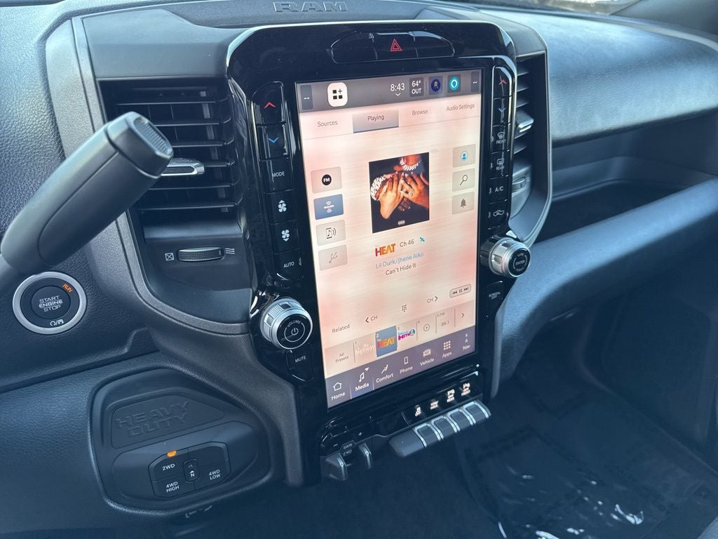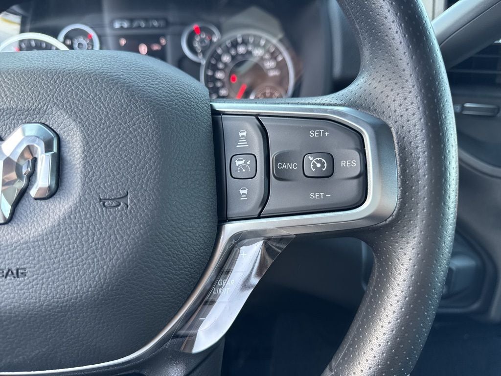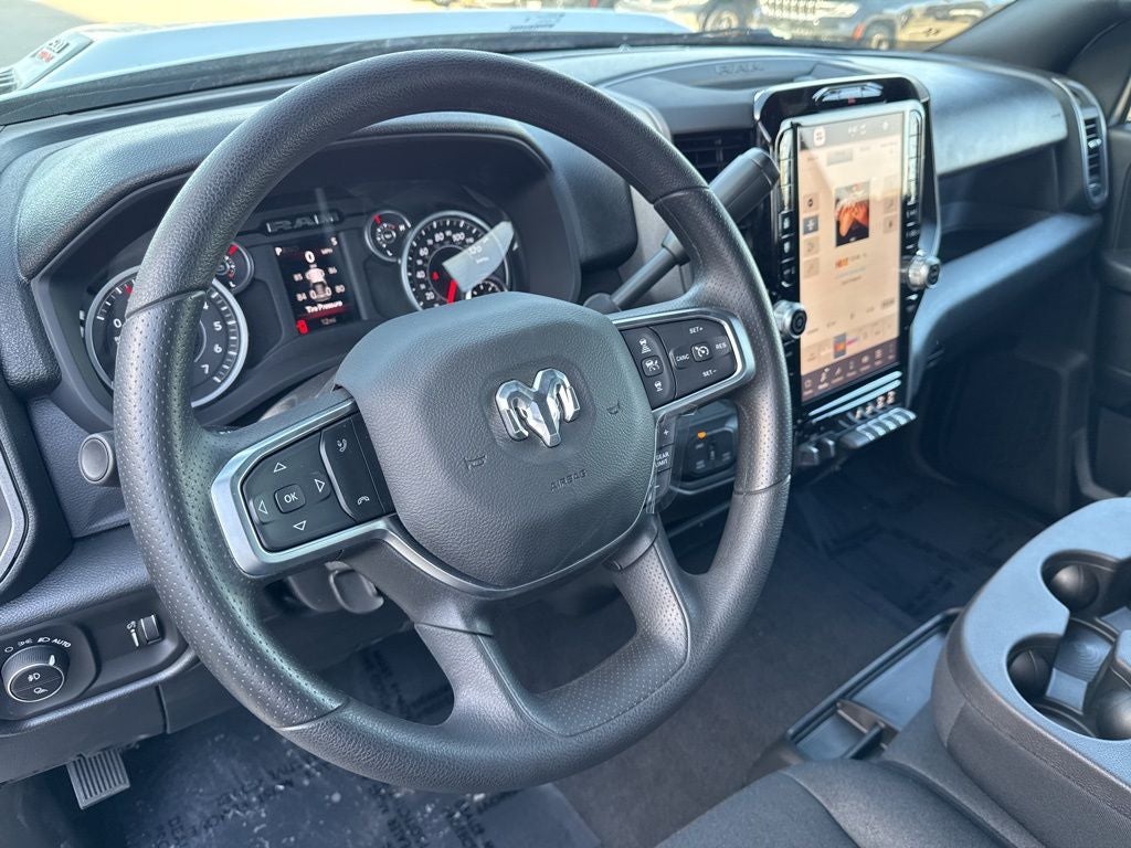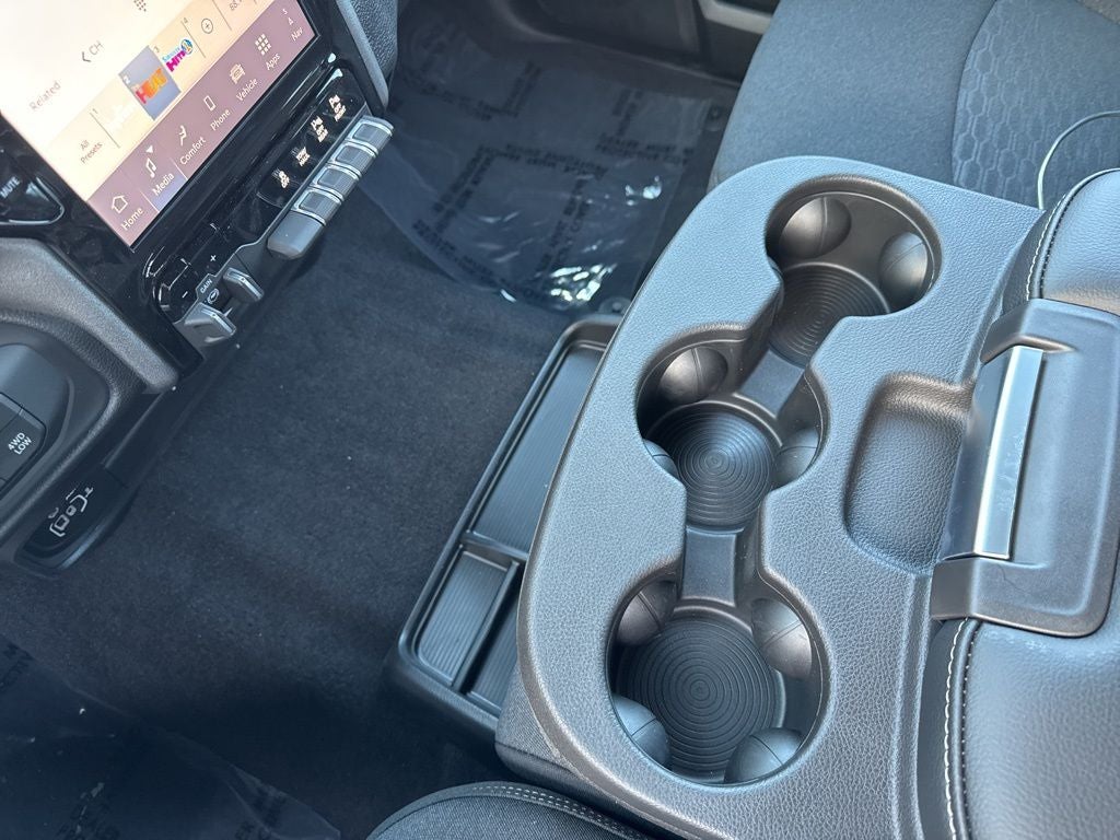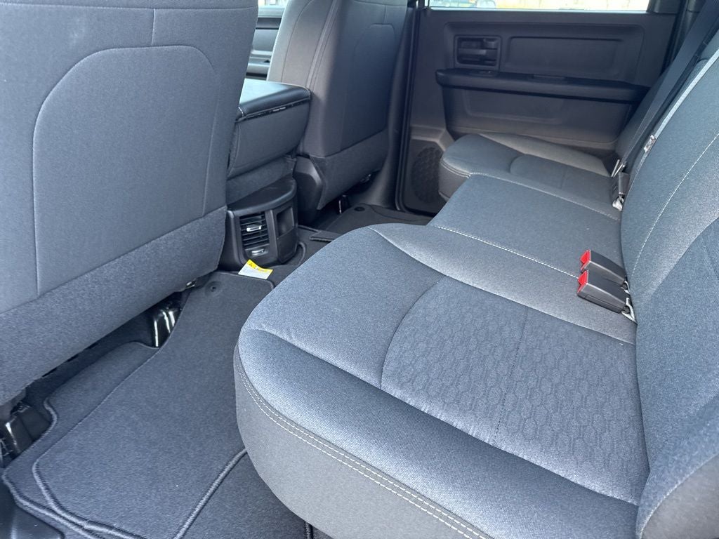 Quick Order Package 2UC Black Express (2 Way Rear Headrest Seat, 4 Way Front Headrests, 40/20/40 Split Bench Seat, Auto Power-Folding Mirrors, Black Exterior Mirrors, Black Wheel Center Hub, Body Color Grille-Surround, Carpet Floor Covering, Cloth 40/20/40 Bench Seat, Exterior Mirrors Courtesy Lamps, Exterior Mirrors with Heating Element, Exterior Mirrors with Supplemental Signals, Forward and Reverse Utility Lights, Front and Rear Floor Mats, Front Armrest with Cupholders, Manual Adjust 4-Way Driver Seat, Manual Adjust 4-Way Front Passenger Seat, Mirror Running Lights, Mopar Black Tubular Side Steps, Painted Front Bumper, Painted Rear Bumper, ParkSense Front/Rear Park Assist System, Power Adjust Mirrors, Power Heated Folding Telescopic Mirrors, Power Telescoping Mirrors, Power-Adjustable Convex Aux Mirrors, Rear Folding Seat, Remote USB Port - Charge Only, Sport Performance Hood, Storage Tray, and Wheels: 20 x 8.0 Black Painted Aluminum), Tradesman Level 1 Equipment Group (115-Volt Auxiliary Front Power Outlet, 12 Touchscreen Display, 400W Inverter, 4G LTE Wi-Fi Hot Spot, Air Conditioning ATC with Dual Zone Control, Alexa Built-in, Apple CarPlay, Auto-Dimming Rear-View Mirror, Connected Travel and Traffic Services, Connectivity - US/Canada, Disassociated Touchscreen Display, Emergency Vehicle Alert System (EVAS), Exterior 115V AC Outlet, For Details, Visit DriveUconnect.com, For More Info, Call 800-643-2112, Global Telematics Box Module, Google Android Auto, GPS Antenna Input, GPS Navigation, HD Radio, Integrated Voice Command with Bluetooth®, Off-Road Info Pages, Radio: Uconnect 5 Navigation with 12.0 Display, Rear Power Sliding Window, Selectable Tire Fill Alert, SiriusXM Radio Service, SiriusXM with 360L, Tinted Acoustic Windshield Glass, and Trailer Tow Pages), 3.73 Axle Ratio, 4-Wheel Disc Brakes, 6 Speakers, ABS brakes, Air Conditioning, AM/FM radio: SiriusXM, Anti-Spin Differential Rear Axle, Apple CarPlay/Android Auto, Brake assist, Clearance Lamps, Compass, Delay-off headlights, Driver door bin, Dual front impact airbags, Dual front side impact airbags, Electronic Stability Control, Front anti-roll bar, Front Center Armrest w/Storage, Front fog lights, Front License Plate Bracket, Front reading lights, Fully automatic headlights, Illuminated entry, Low tire pressure warning, Manual Folding Exterior Mirrors, Manual Telescoping Mirrors, Manufacturer's Statement of Origin, Occupant sensing airbag, Outside temperature display, Overhead airbag, Overhead console, Panic alarm, ParkView Rear Back-Up Camera, Passenger door bin, Passenger vanity mirror, Power steering, Power windows, Radio data system, Radio: Uconnect 5 with 8.4 Display, Rear anti-roll bar, Rear step bumper, Rear Wheelhouse Liners, Rear window defroster, Remote keyless entry, Speed control, Tachometer, Tilt steering wheel, Traction control, Variably intermittent wipers, Voltmeter, and Wheels: 17 x 7.5 Black Steel StyleD.